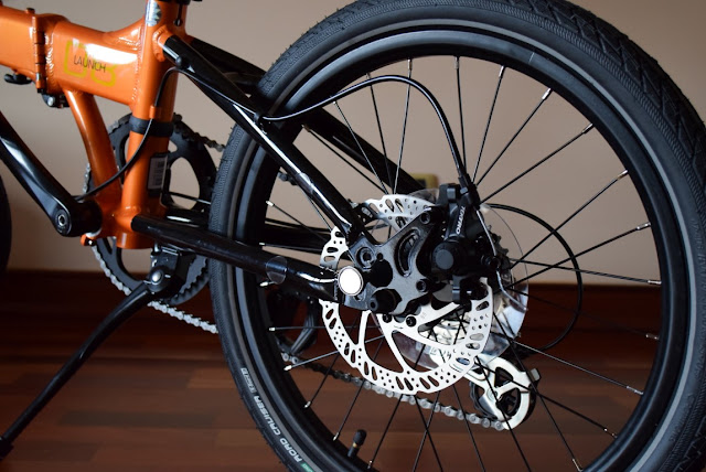 Outro destaque na Launch, que é no fundo a maior diferença, o selling point: discos. E são Tektro, funcionam bem e são sempre preferenciais para viagens grandes.
