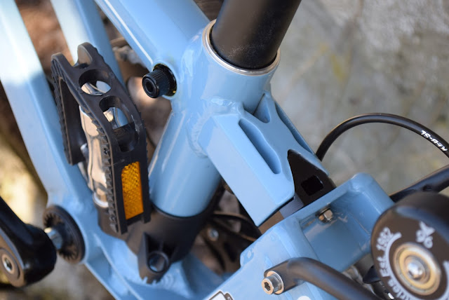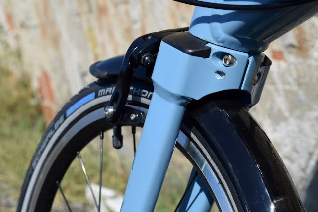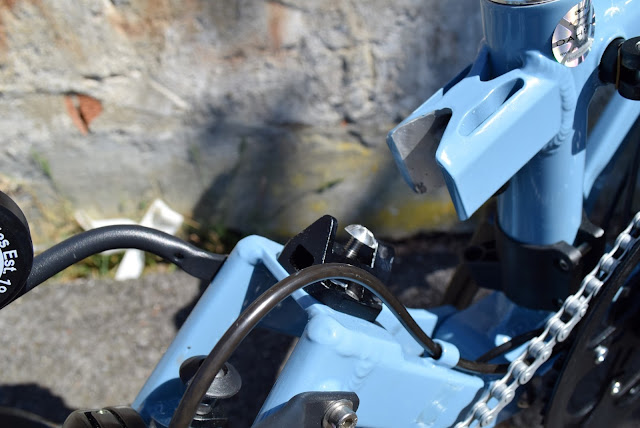 Uma bonita chapa na testa do quadro. O espigão Eiffel é compatível com o adaptador Klickfix Caddy (que também pode ser usado no espigão de selim)