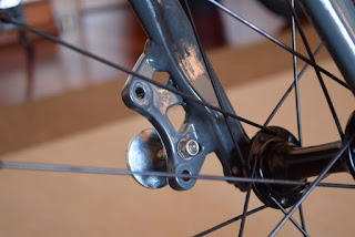 A slot para o Valet Truss ou Klickfix, tapada por uma chapa com o logo da DAHON. São 3 buracos onde se encaixa o adaptador.