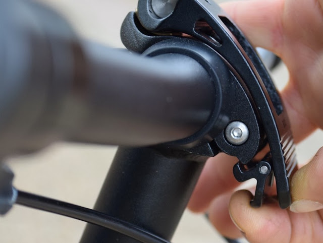 Os novos espigões vêm com um dente que ajuda a bloquear o guiador. Não que seja preciso, porque já era suficientemente eficaz, mas é sempre um extra.