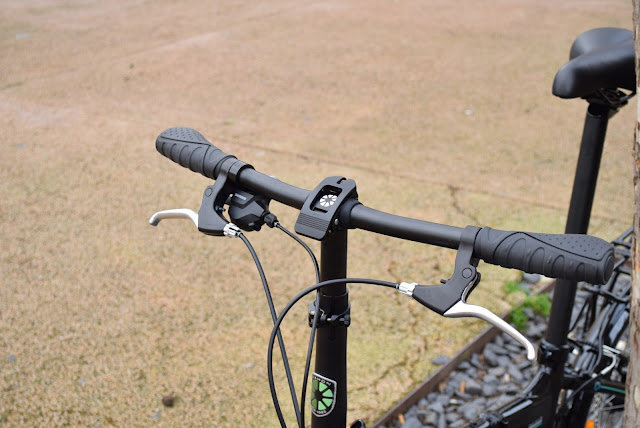 A Mariner tem um espigão de guiador telescópico que permite regular a altura sem necessidade de ferramentas. O guiador faz vários ângulos e o aperto é robusto.