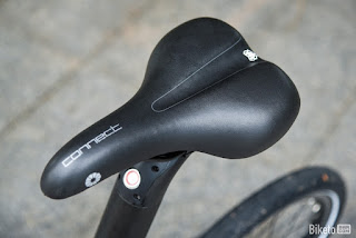 Punhos e selim ergonómicos. Manetes de travão Avid.