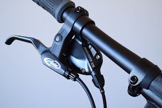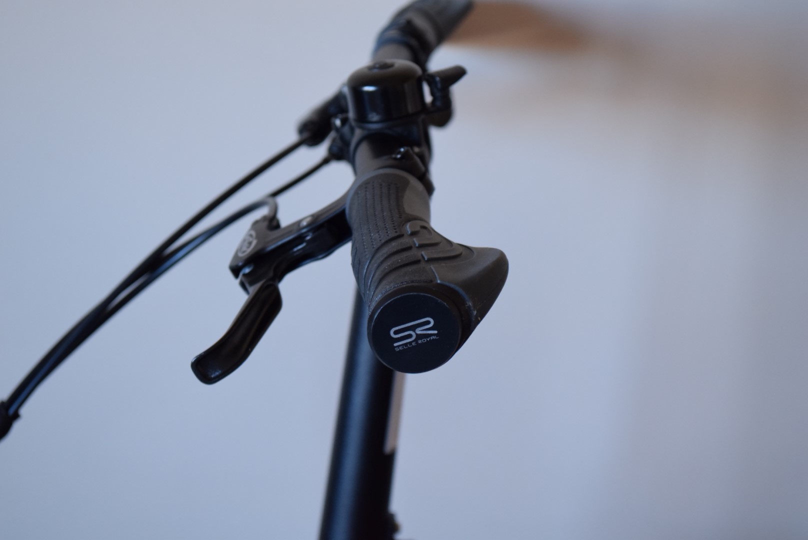 Manipulo Sram X5 e manetes de travão Avid. Os punhos são ergonómicos da Selle Royal