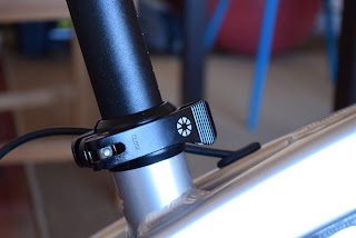 Aperto de selim cónico e ergonómico, assim como o aperto da dobradiça V-clamp do quadro