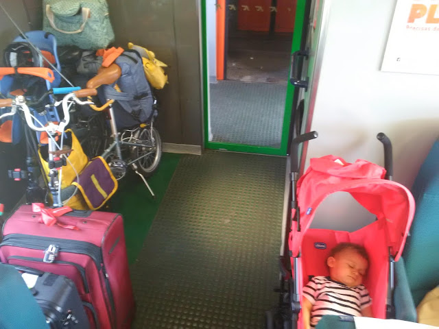 Sendo a bicicleta o nosso veículo principal, para distâncias maiores como esta tínhamos 3 opções, comboio, aluguer de automóvel e autocarro. Normalmente decidimos sempre as deslocações por esta ordem de preferência. E agora com um bebé na equação, o comboio é sem dúvida o melhor dos 3 porque oferece um melhor conforto, rapidez e segurança.