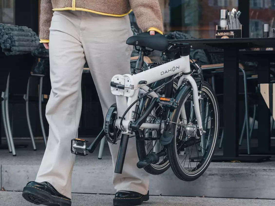Uma bicicleta dobrável muito completa quase livre de manutenção, com 3 mudanças internas, travão traseiro contrapedal, cabo DELTEC para reduzir tensão na dobradiça, iluminação a dínamo e equipada com guardalamas e suporte traseiro